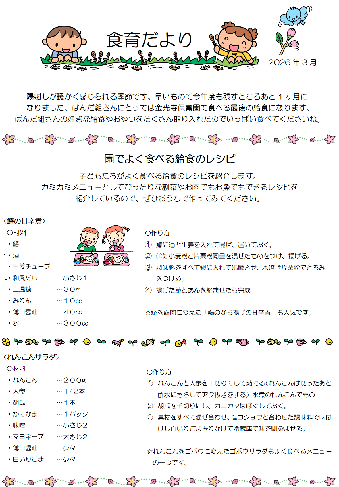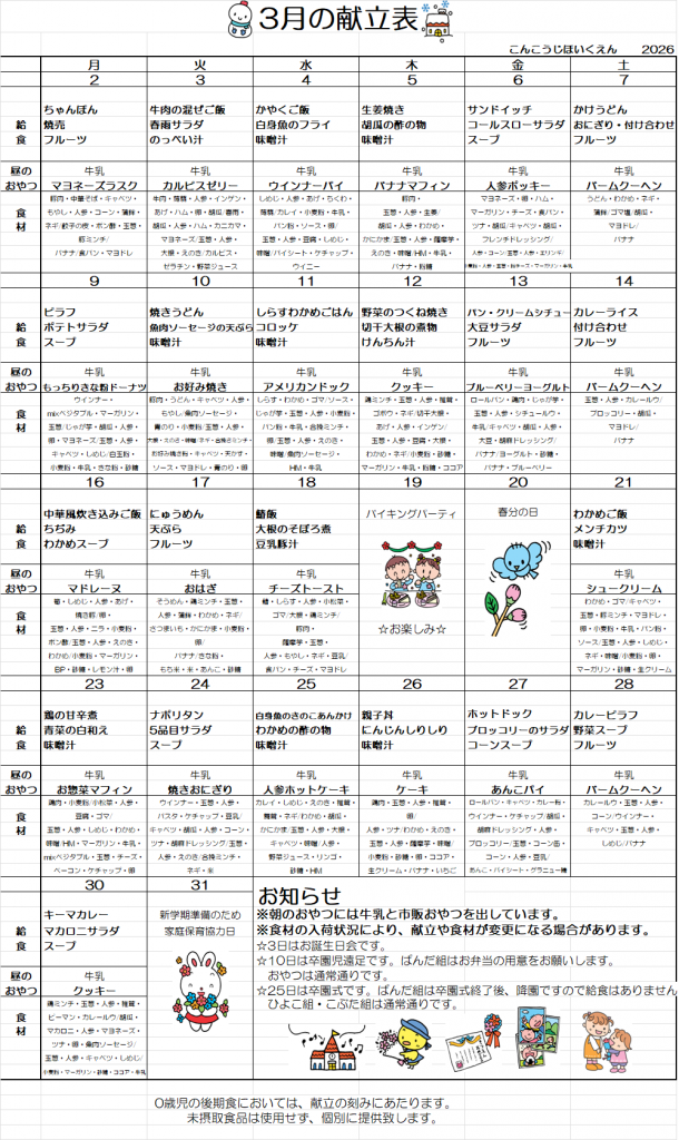 3月の献立・食育だより